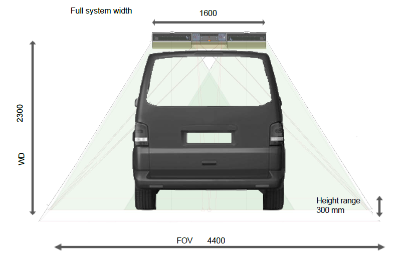 - Compact system on the vehicle is required, covering a wider area than the width of the vehicle itself